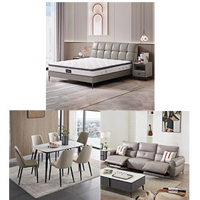 星空漫步(大三座)双电动+168高脚真皮床+奥尔维岩板餐桌椅