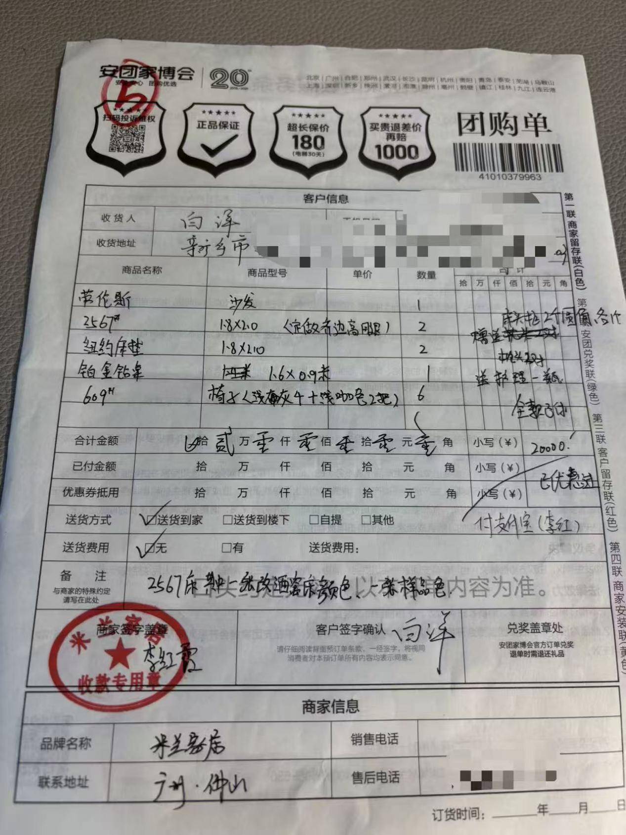 回想起2025年8月的那个夏天,原本一切都在朝着美好的方向行进。在第7届新乡安团家博会现场,我相中了米兰家居的产品,现场刷卡支付了20000元定金,并与商家敲定了9月初送货安装的约定。那时的我,满心期待着新家能如期焕新。